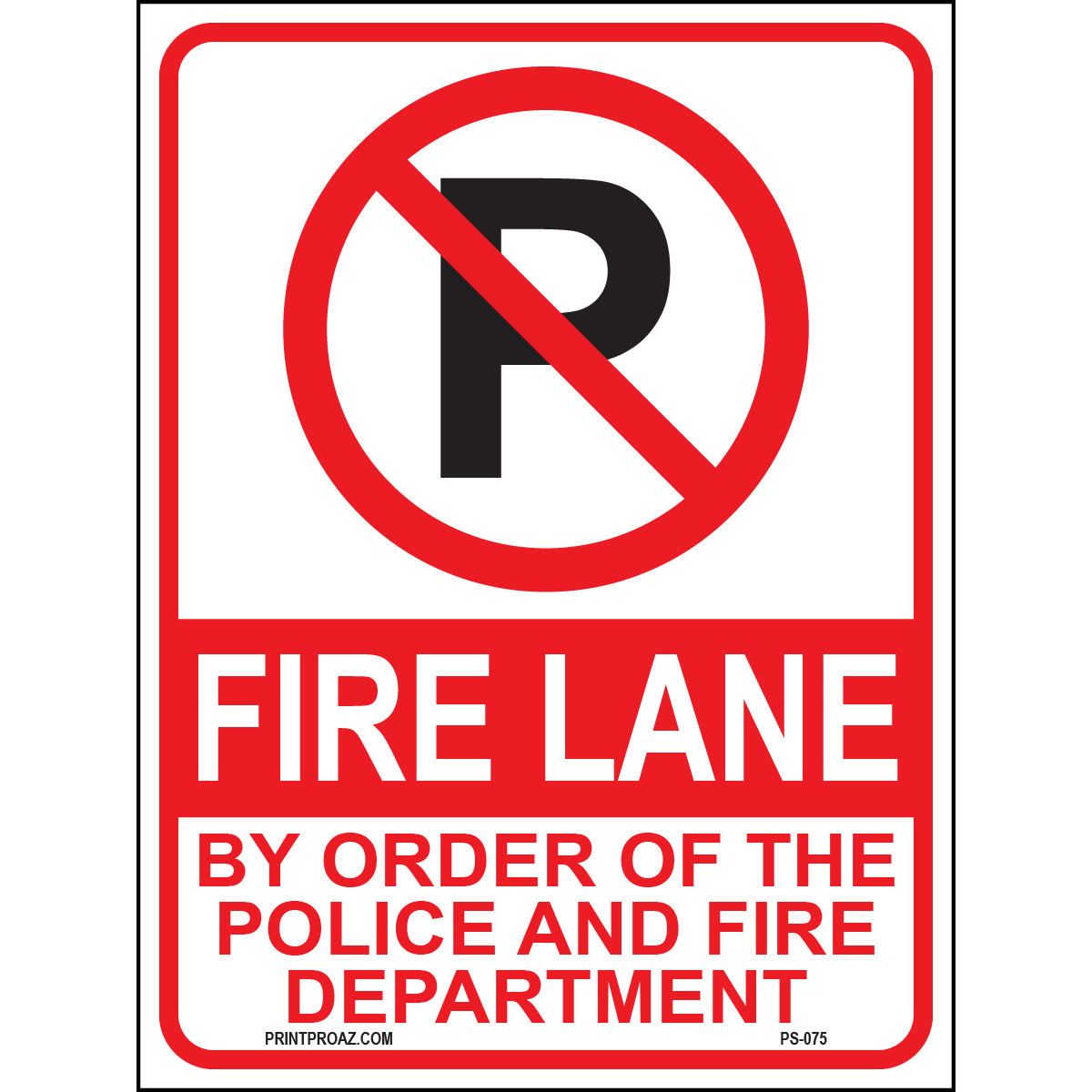 "Fire Lane by Order of the Police and Fire Department" Red/White/Black Print on Aluminum
