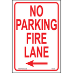 "No Parking Fire Lane (Arrow Left)" Red/White/Black Print on Aluminum