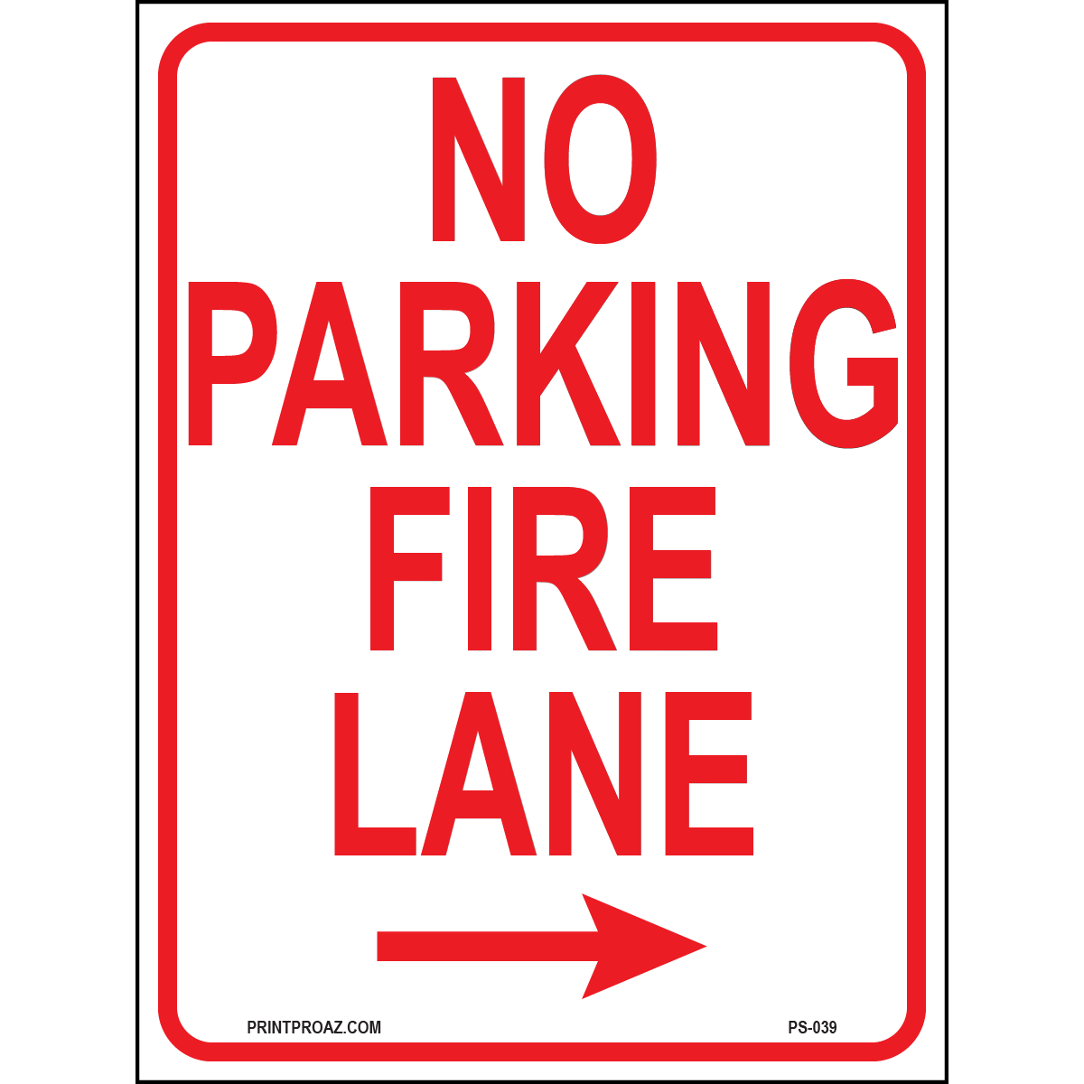 No Parking Fire Lane (Arrow Right), Aluminum, PS-039
