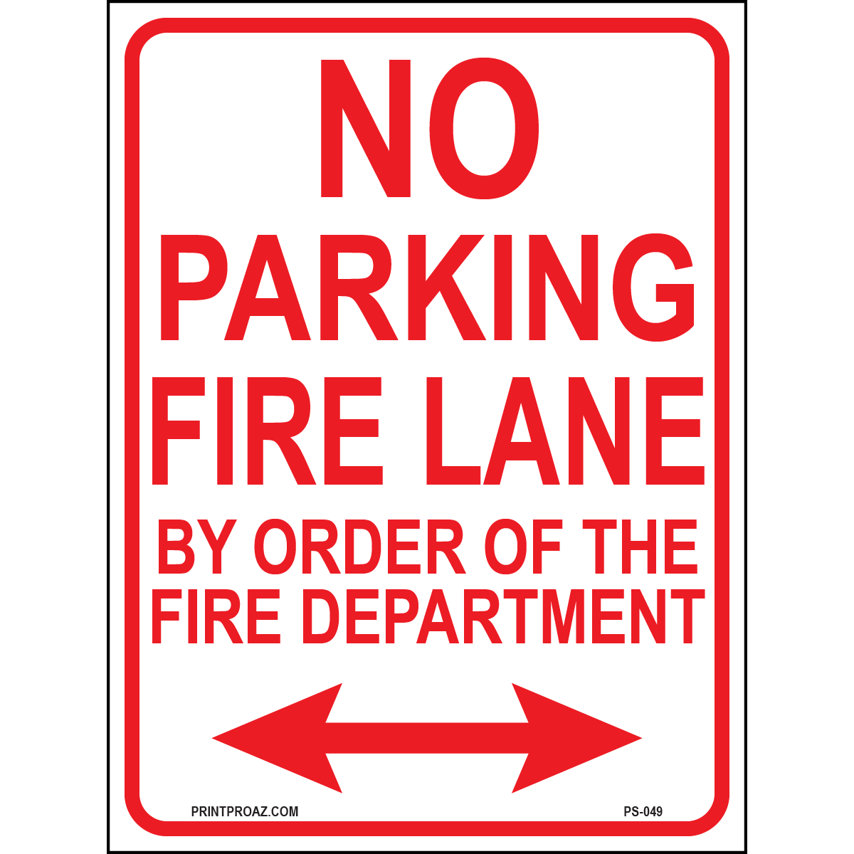 "No Parking Fire Lane By Order of the Fire Department" Red/White/Black Print on Aluminum
