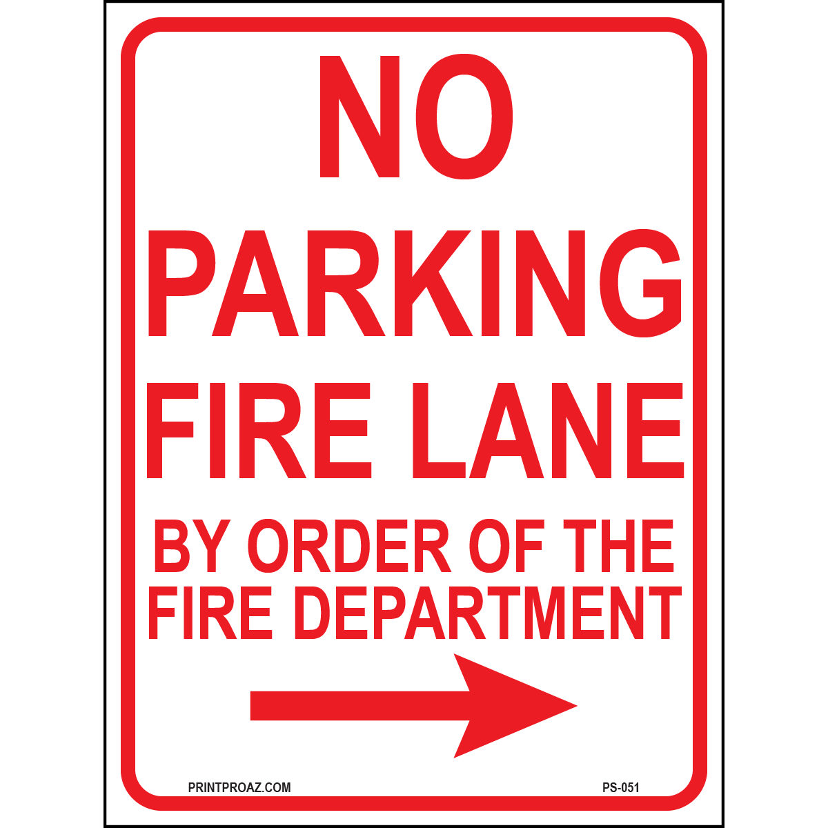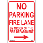 "No Parking Fire Lane By Order of the Fire Department(Arrow Right)" Red/White/Black Print on Aluminum