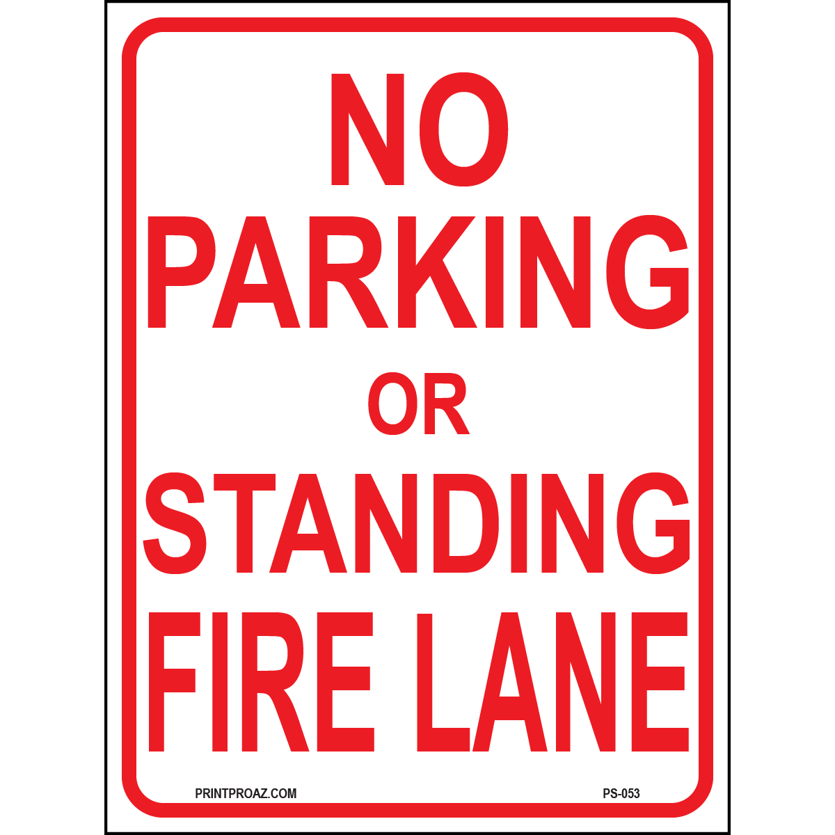 "No Parking or Standing Fire Lane" Red/White/Black Print on Aluminum
