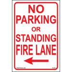 "No Parking or Standing Fire Lane (Arrow Left)" Red/White/Black Print on Aluminum
