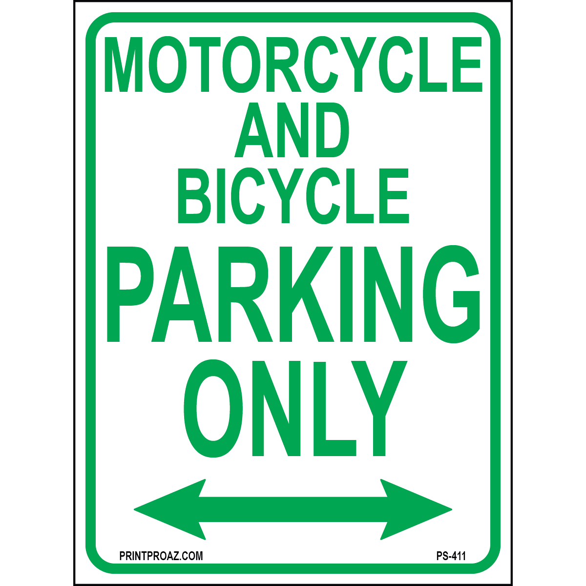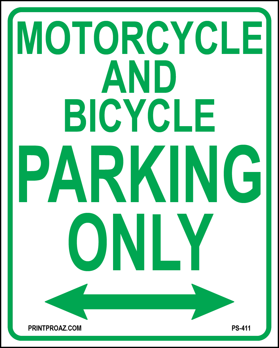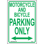 "Motorcycle and Bicycle Parking Only Sign" Green/White Print on Aluminum