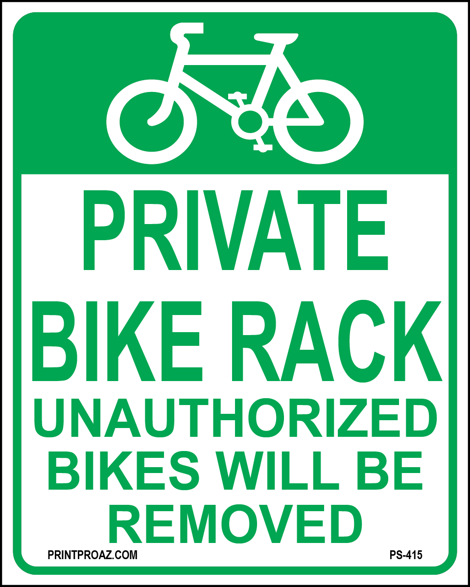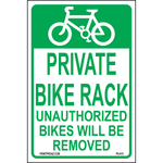 "Private Bike Rack Sign" Green/White Print on Aluminum