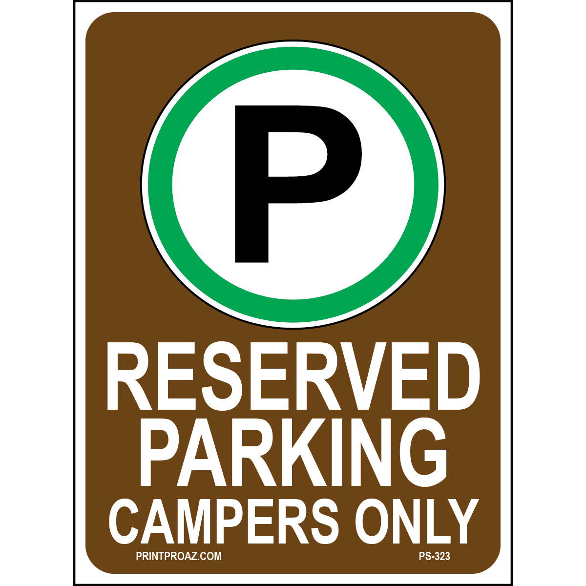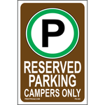"Campers Only Reserved Parking Sign" Brown/Green/White Print on Aluminum
