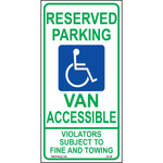"Texas Reserved Parking Van Accessible Sign" Green/Blue/White/Black Print on Aluminum