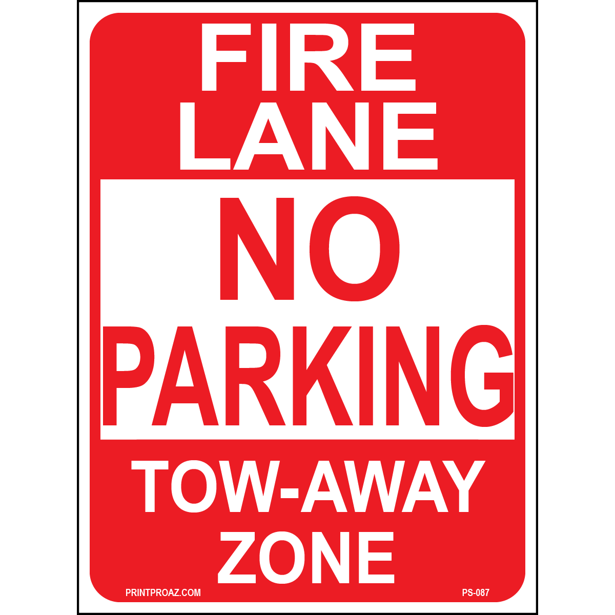 "Fire Lane No Parking Tow-Away Zone" Red/White/Black Print on Aluminum
