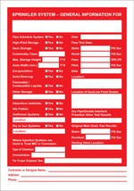 Sprinkler System - General Information For, Pipe Schedule System Yes No, High-piled Storage Yes No, Rack Storage: Yes No, Commodity Class: Max. Storage Ht, Aisle Width (min.), Encapsulation Yes No, Solid Shelving: Yes No, Flammable/combustible Liquids: Yes No, Other Storage: Yes No, Hazardous Materials: Yes No, Idle Pallets: Yes No, Antifreeze Systems: Yes No, Location:. Dry Or Aux Systems Yes No, Location:, Date:, Flow Test Data:, Static:, Resid:, Flow:, Pitot:, Date: Location:, Location Of Aux/low Point Drains:, Dry Pipe/double Interlock Preaction Valve Test Results, Original Main Drain Test Results:, Static:, Residual:, Venting Valve Location:, Where Injection Systems Are Used To Treat Mic Or Corrosion:, Type Of Chemical:, Concentration:, For Proper Disposal, See:, Name Of Contractor Or Designer:, Address:, Phone:.