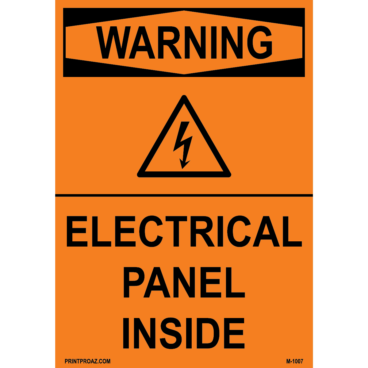 "Warning Electrical panel inside" 0.06 inch thick Orange aluminum with Black print