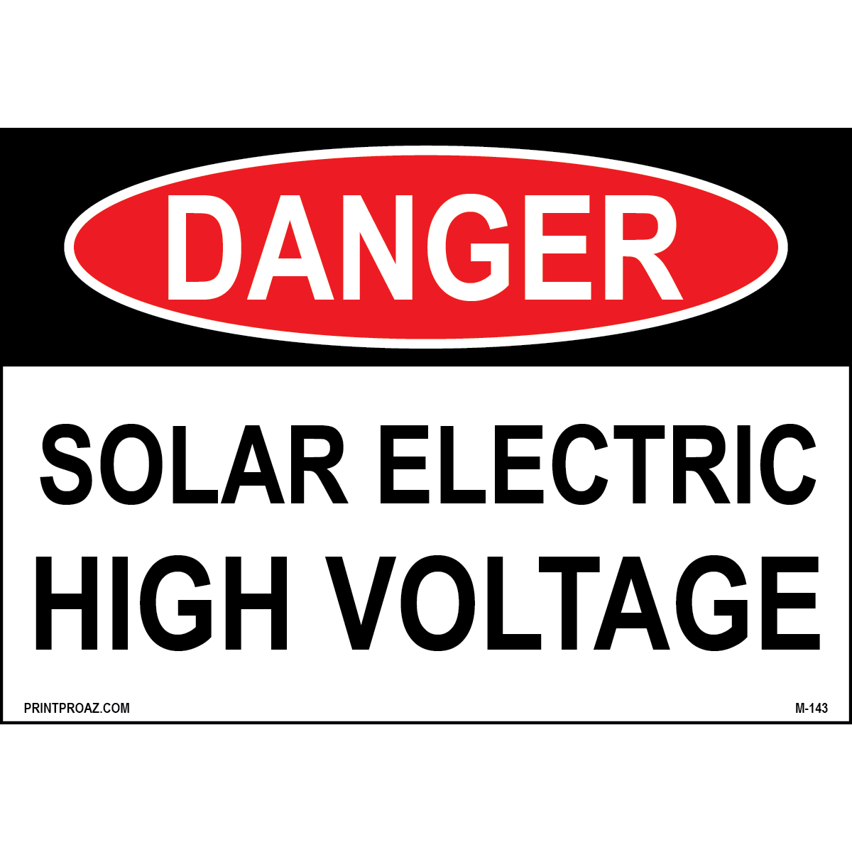 "Danger Solar electric High voltage" 0.06 inch thick White aluminum with Red/Black print
