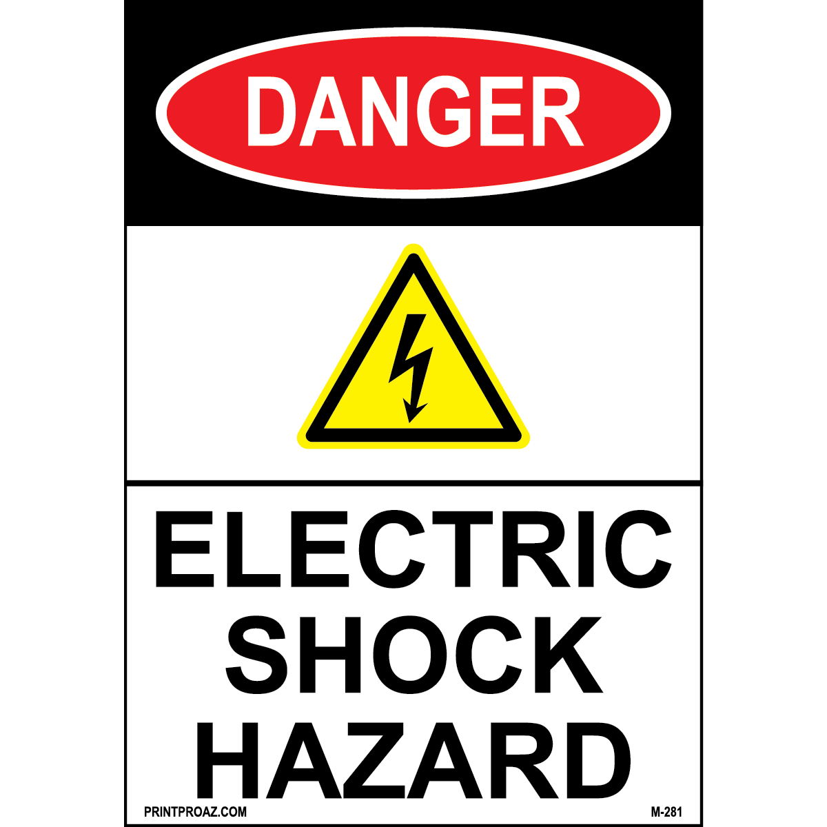 "Danger Electric shock hazard" 0.06 inch thick White aluminum with Black/Red print