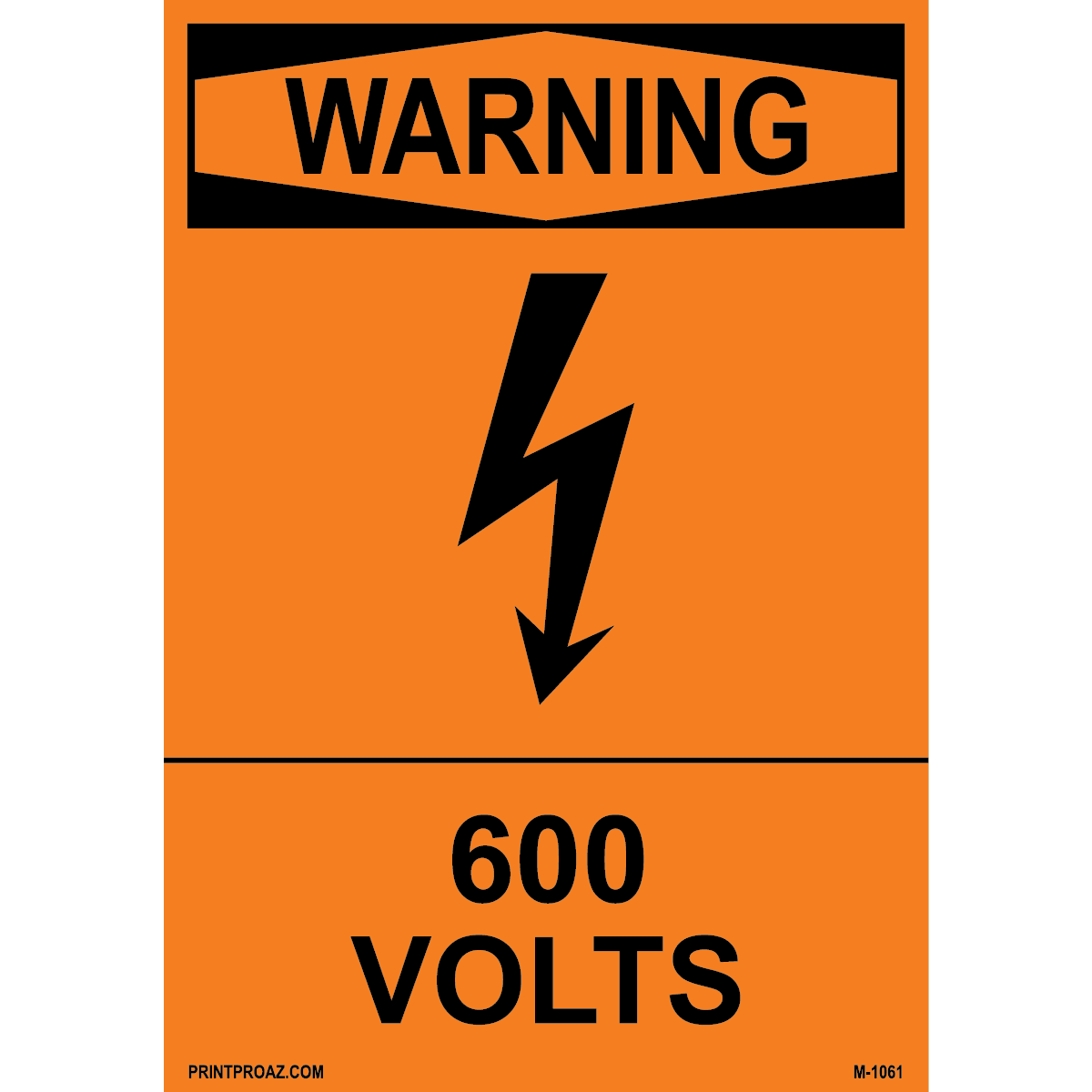 "Warning 600 volts" 0.06 inch thick Orange aluminum with Black print