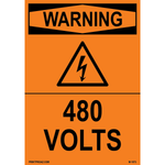 "Warning 480 volts" 0.06 inch thick Orange aluminum with Black print