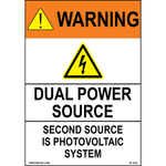"Danger Dual power source Second source is photovoltaic system" 0.06 inch thick White aluminum with Black/Orange/Yellow print