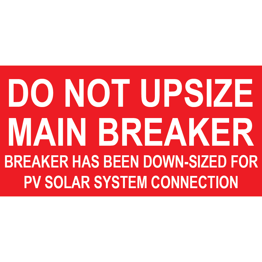 Protect your solar energy systems with this high-visibility and NEC Compliant Do Not Upsize Main Breaker label. Featuring bold red and white print, this durable plastic tag clearly states: