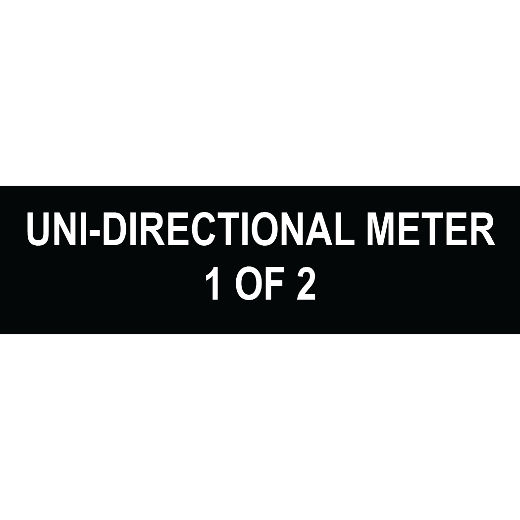 Protect your solar energy systems with this high-visibility and NEC Compliant Uni-directional Meter 1 OF 2 label. Featuring black background and white print, this durable plastic tag clearly states: