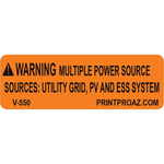 3x1 Warning Multiple Power Source, Decal Solar Labels, V-550