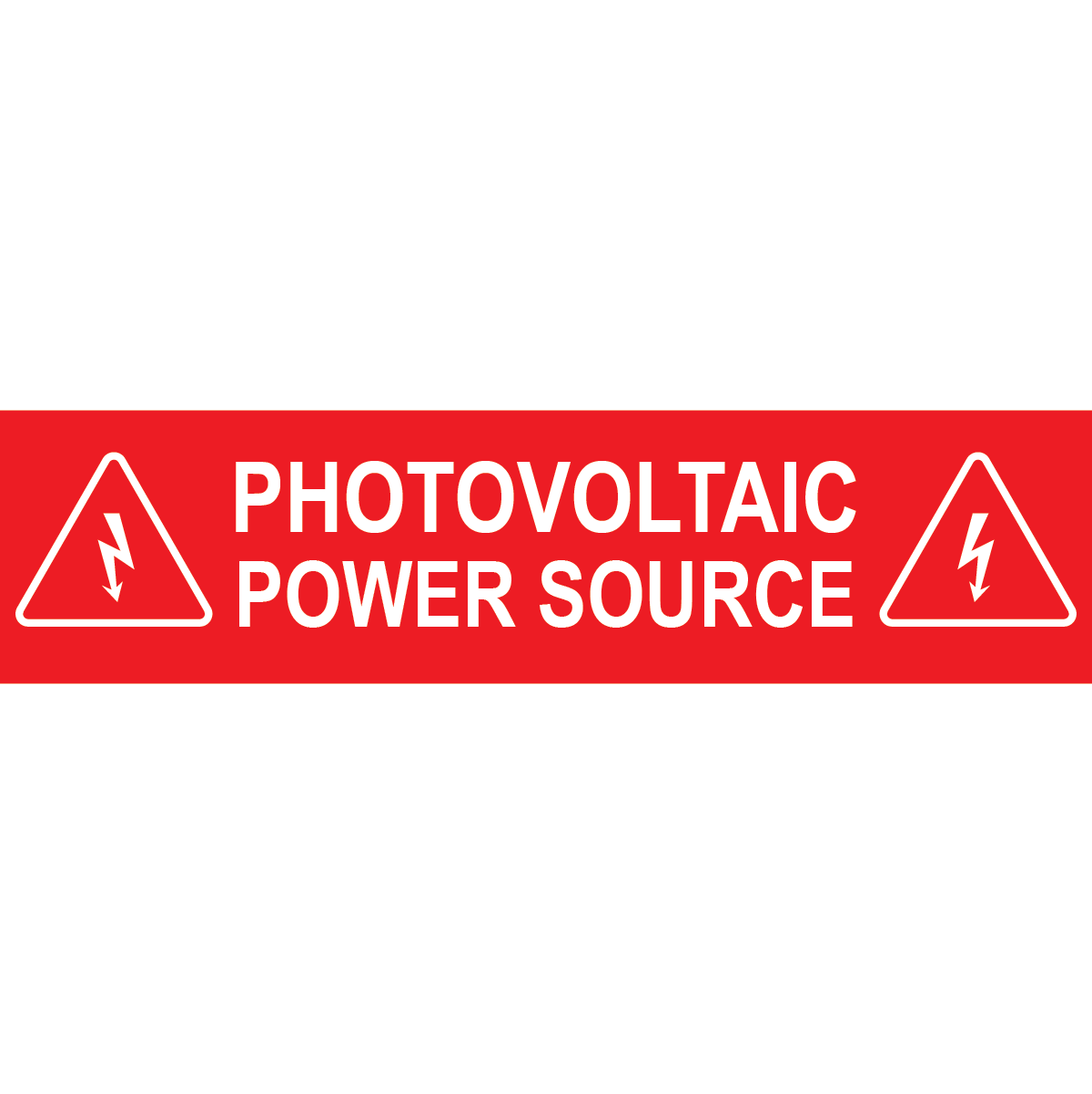 Protect your solar energy systems with this high-visibility and NEC Compliant Photovoltaic Power Source label. Featuring bold red and white print, this durable plastic tag clearly states: