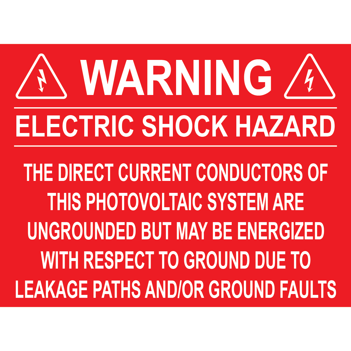 THE DIRECT CURRENT CONDUCTORS OF THIS PHOTOVOLTAIC SYSTEM ARE UNGROUNDED BUT MAY BE ENERGIZED WITH RESPECT TO GROUND DUE TO LEAKAGE PATHS AND/OR GROUND FAULTS