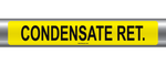 This Condensate Ret. Self-Adhesive Pipe Marker uses informational messages for safety identification and compliance. A Condensate Ret. Self-Adhesive Pipe Marker is a useful tool to help protect the health and safety of personnel, but is not a substitute for required protective measures for eliminating or reducing hazards.