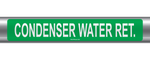 This Condenser Water Ret. Self-Adhesive Pipe Marker uses informational messages for safety identification and compliance. A Condenser Water Ret. Self-Adhesive Pipe Marker is a useful tool to help protect the health and safety of personnel, but is not a substitute for required protective measures for eliminating or reducing hazards.