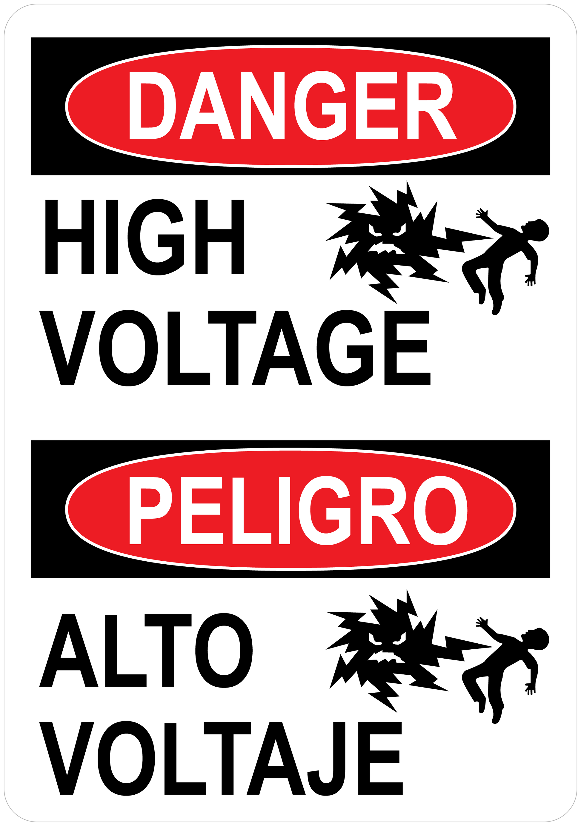 Bilingual OSHA Danger / Peligro Sign: High Voltage / Alto Voltaje (With Graphic)