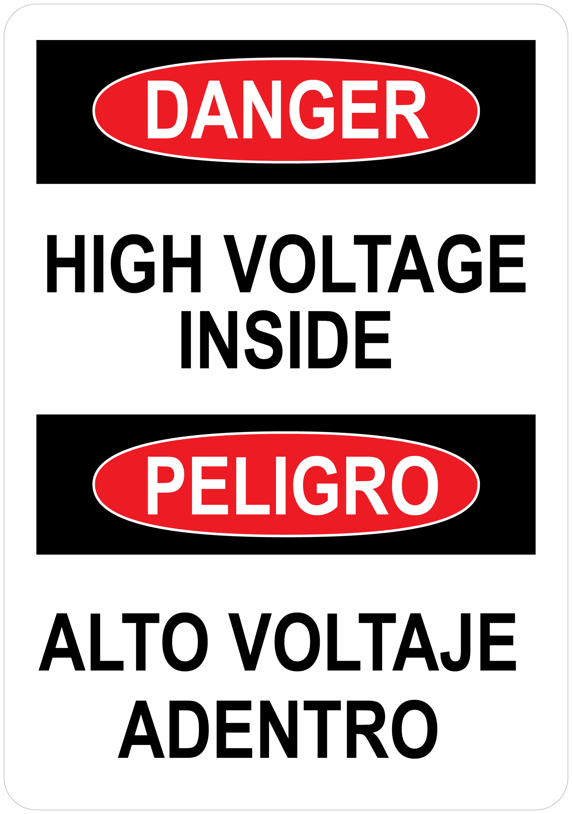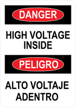 Bilingual OSHA Danger / Peligro Sign: High Voltage Inside / Alto Voltaje Adentro