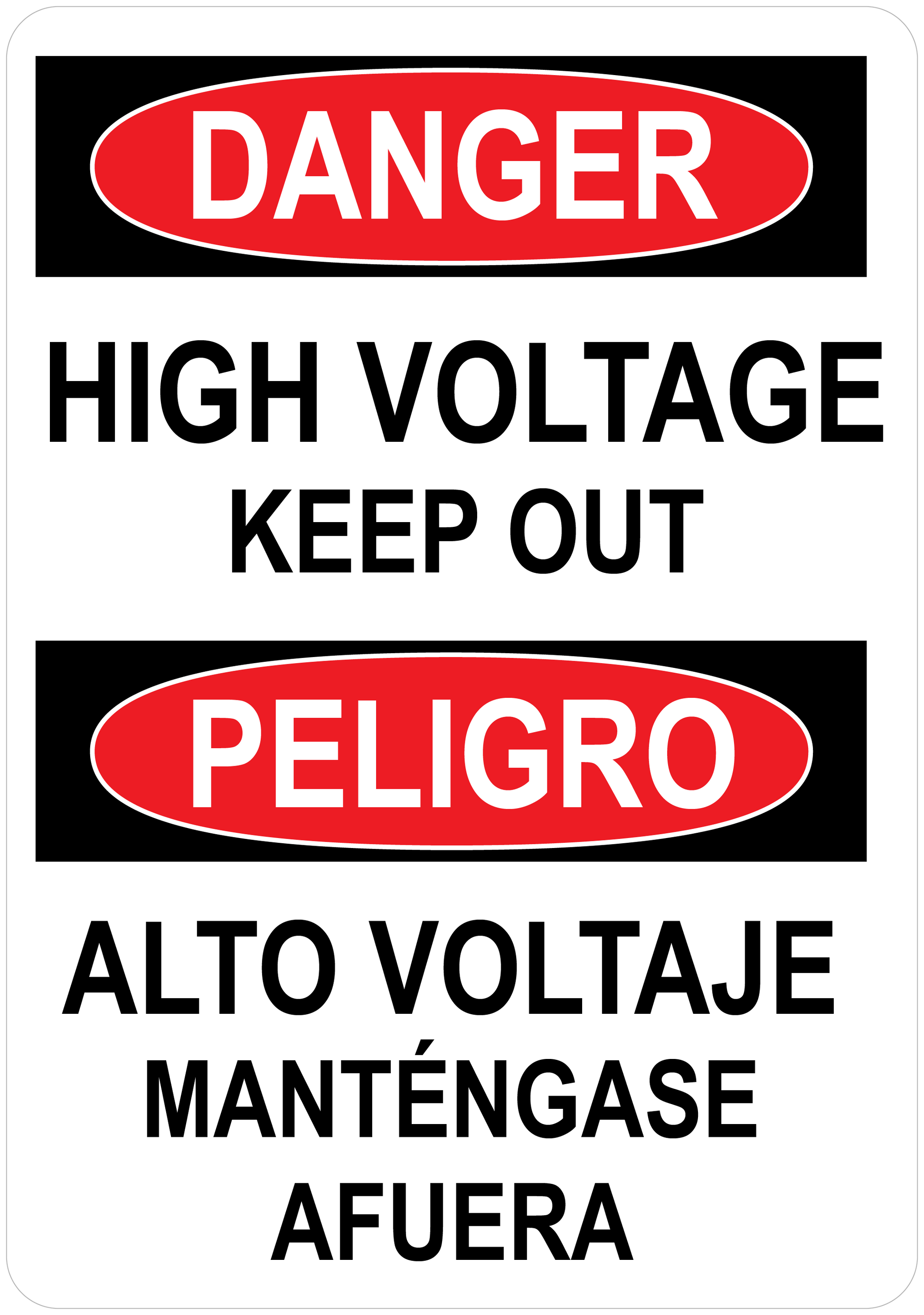 Bilingual OSHA Danger / Peligro Sign: High Voltage Keep Out / Alto Voltaje Mantengase Afuera