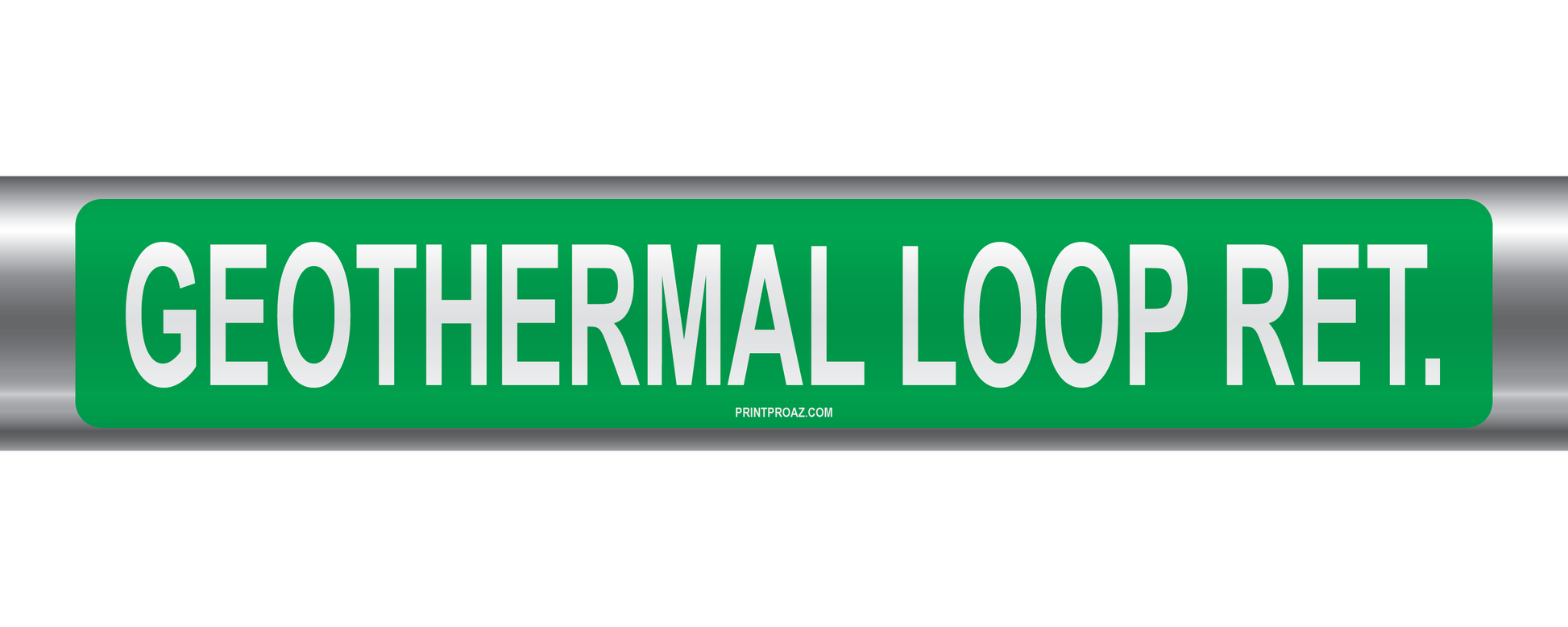 This Geothermal Loop Ret. Self-Adhesive Pipe Marker uses informational messages for safety identification and compliance. A Geothermal Loop Ret. Self-Adhesive Pipe Marker is a useful tool to help protect the health and safety of personnel, but is not a substitute for required protective measures for eliminating or reducing hazards.