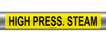 This High Press. Steam Self-Adhesive Pipe Marker uses informational messages for safety identification and compliance. A High Press. Steam Self-Adhesive Pipe Marker is a useful tool to help protect the health and safety of personnel, but is not a substitute for required protective measures for eliminating or reducing hazards.