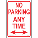 "No Parking Any Time (Arrow Both Sides)" Red/White/Black Print on Aluminum