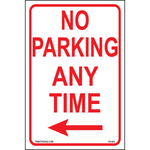 "No Parking Any Time (Arrow Left)" Red/White/Black Print on Aluminum
