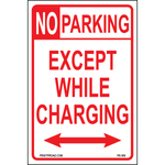 "No Parking Except While Charging Signs" Red/White Print on Aluminum
