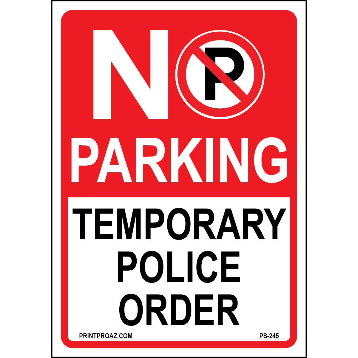 No Parking Temporary Police Order Signs, Aluminum, PS-245