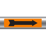 Orange/Black Arrow Label meets ANSI/ASME A13.1-2015 compliance for the identification of pipes. The Orange/Black Arrow Label has no legend, but instead arrows for the marking of pipe flow.