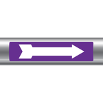 Purple/White Arrow Label meets ANSI/ASME A13.1-2015 compliance for the identification of pipes. The Purple/White Arrow Label has no legend, but instead arrows for the marking of pipe flow.