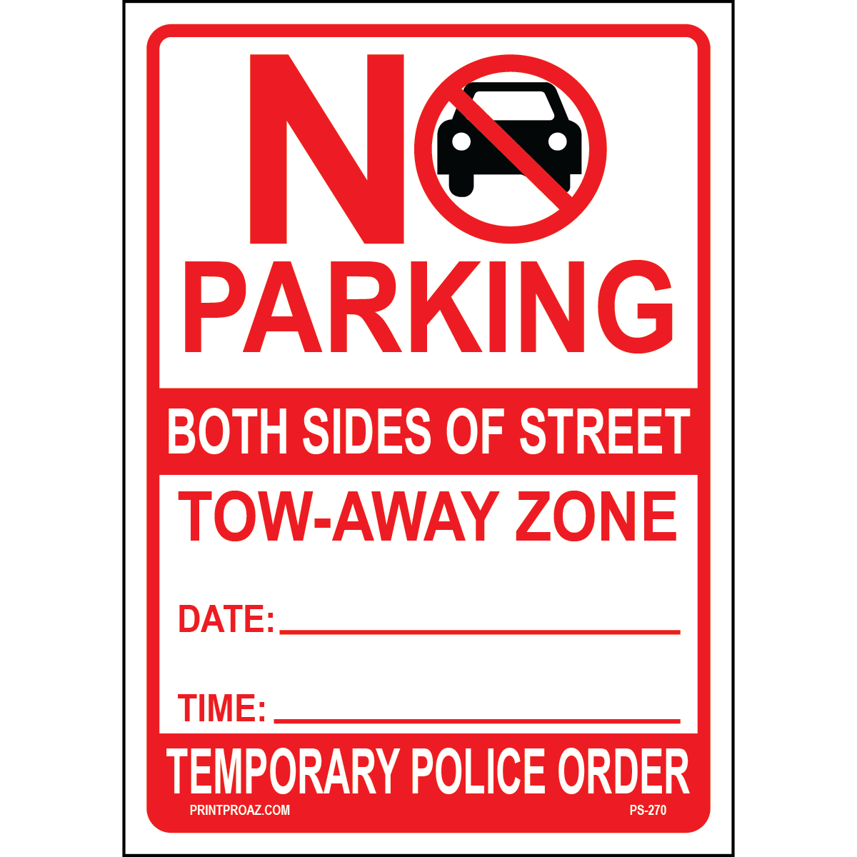 "Temporary No Parking Both Sides of the Street Signs" Red/White Print on Aluminum