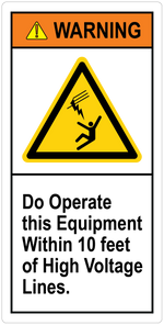 ANSI Warning Label: Do Operate This Equipment Within 10 Feet Of High Voltage Lines (with Symbol)