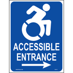 "New York Accessible Parking Sign (Accessible Entrance Arrow Right)" Blue/White/Black Print on Aluminum