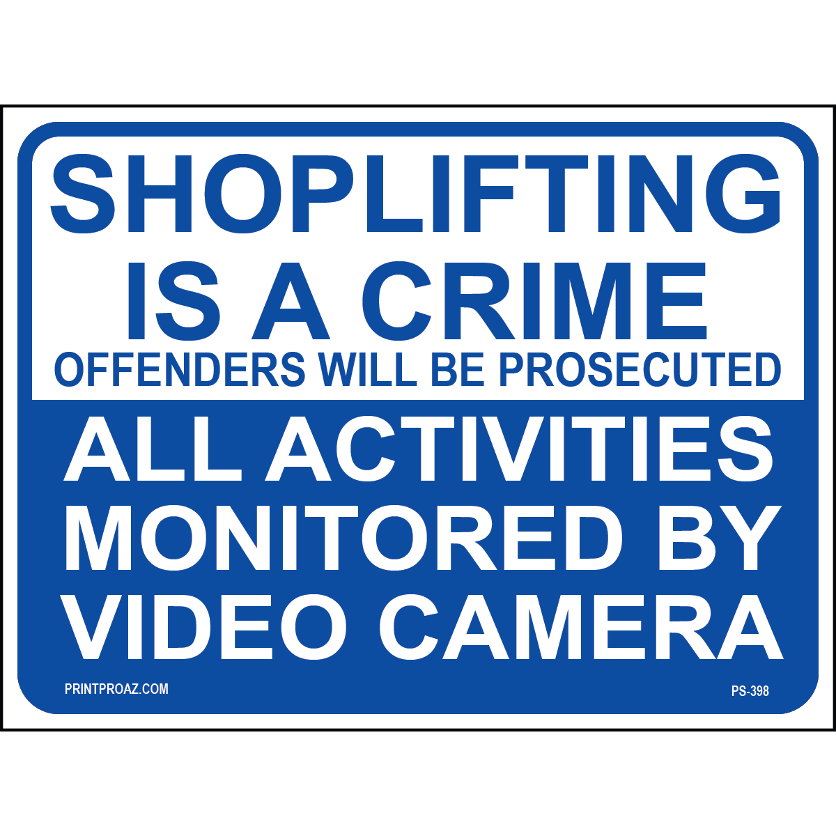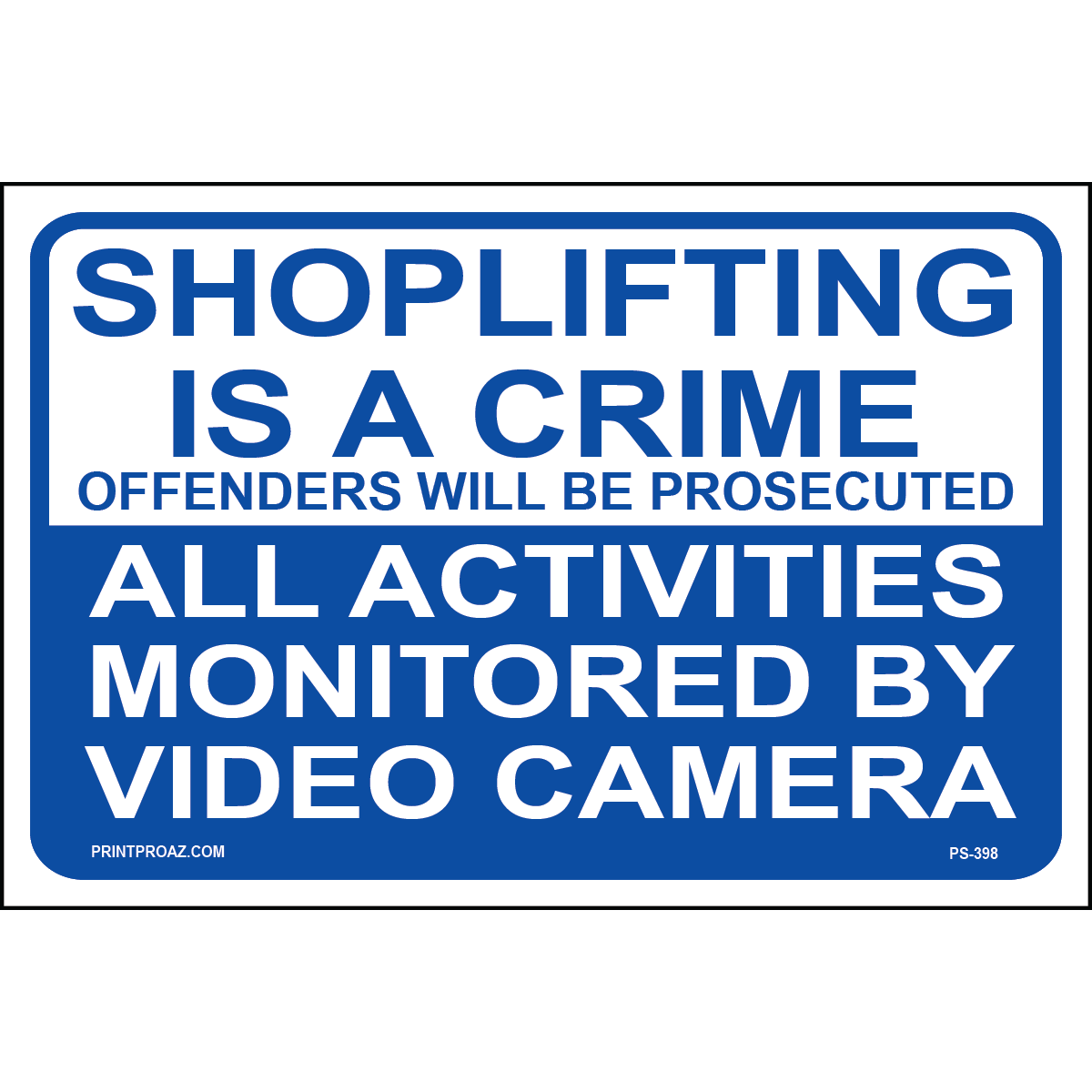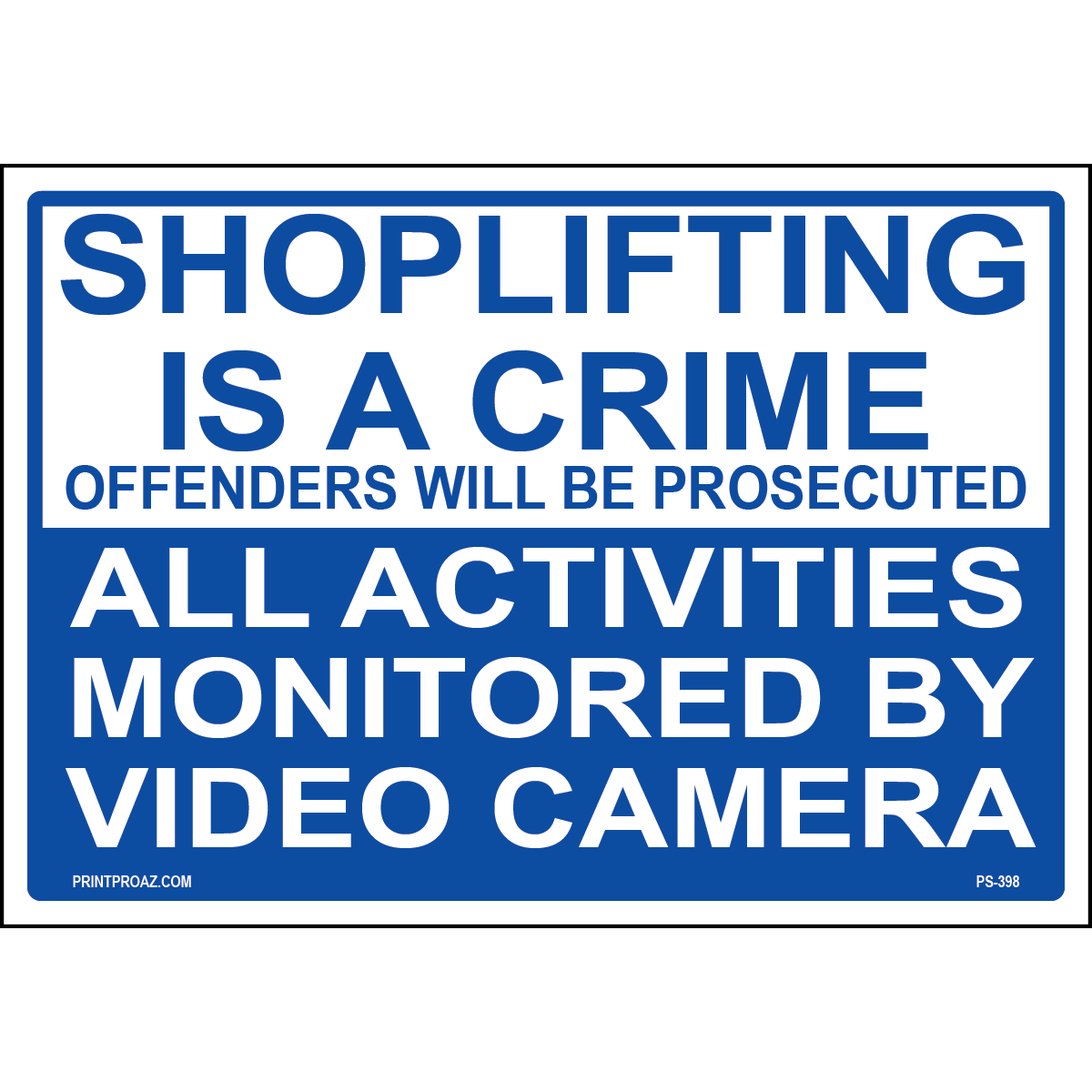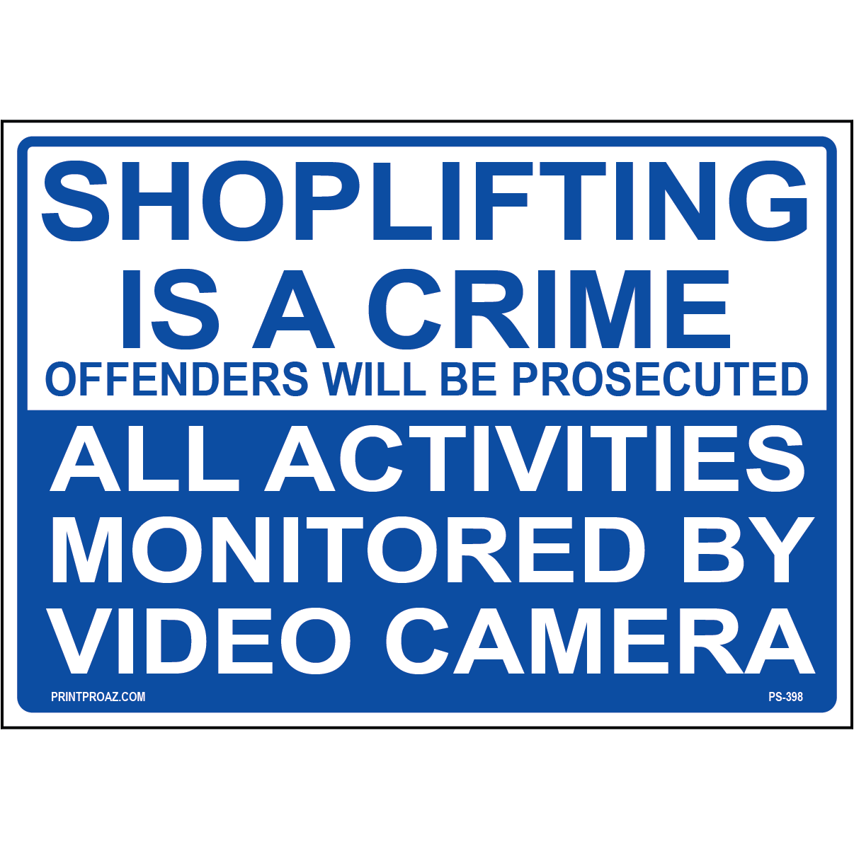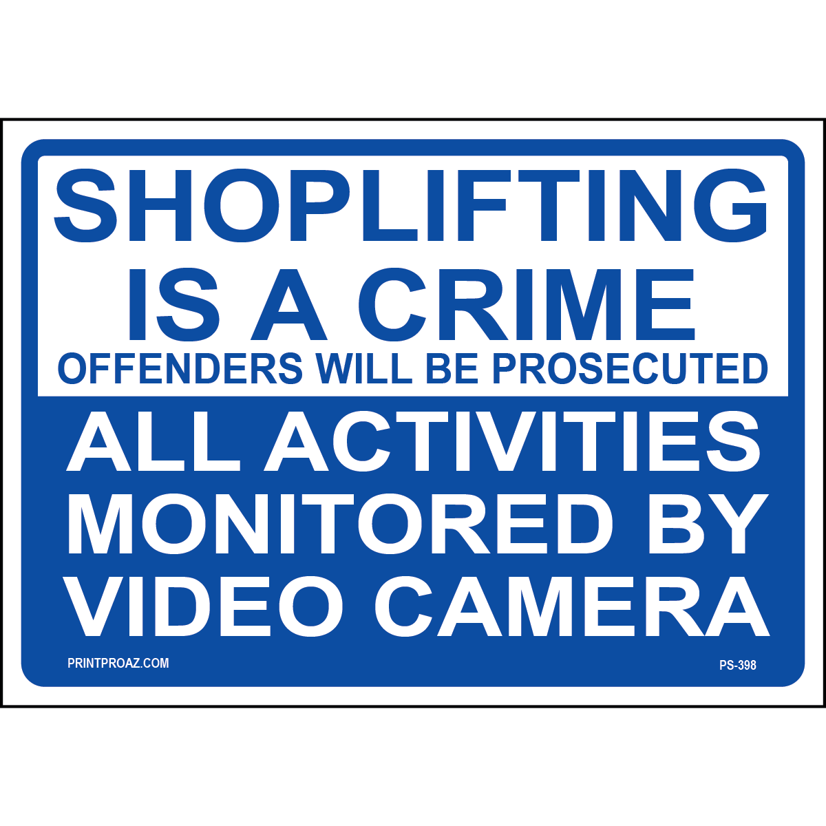 "Activities Monitored By Video Sign" Blue/White Print on Aluminum