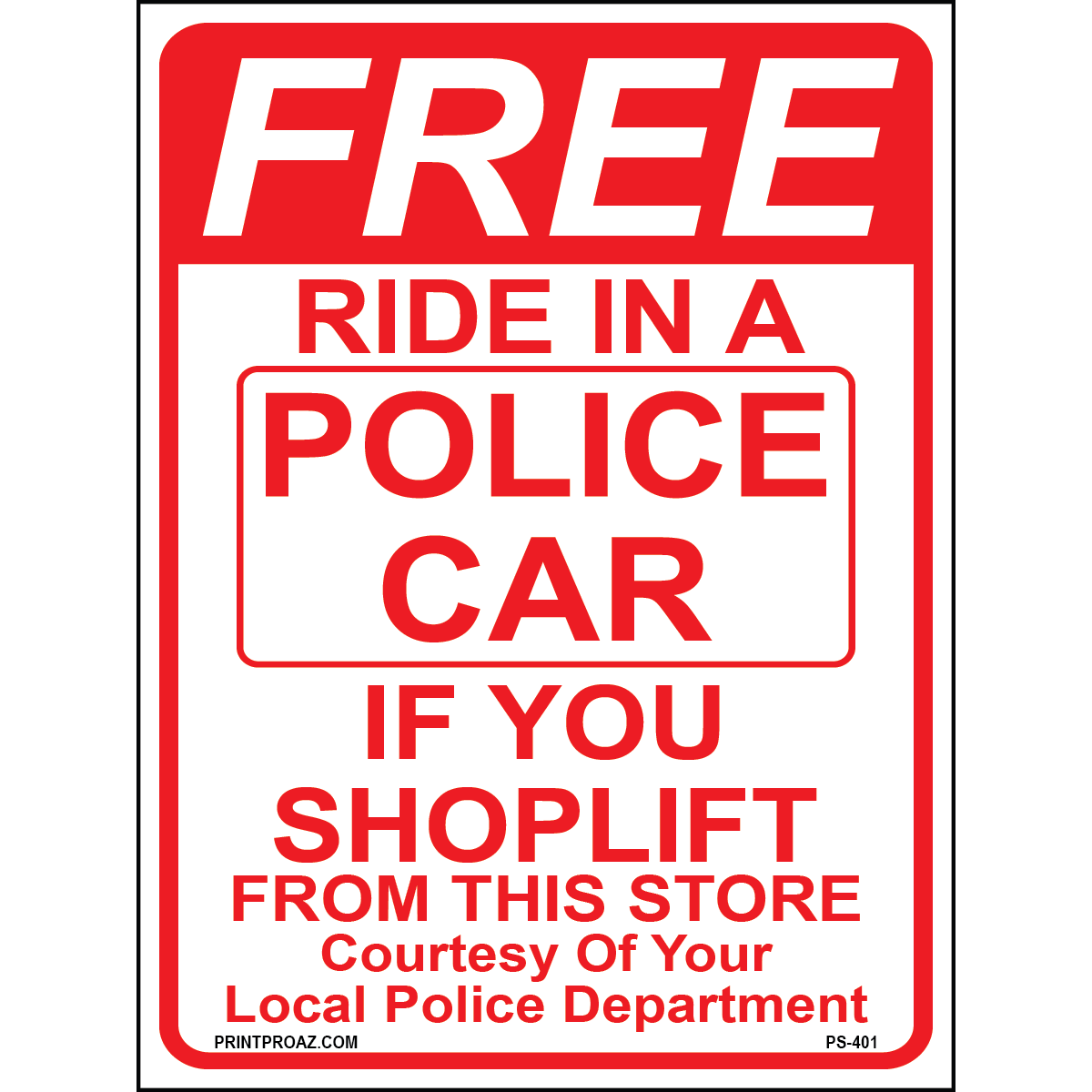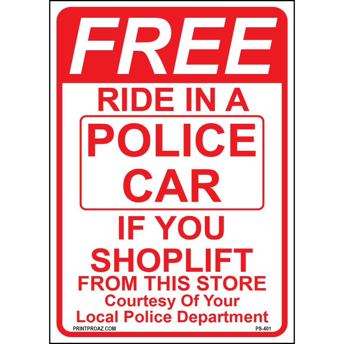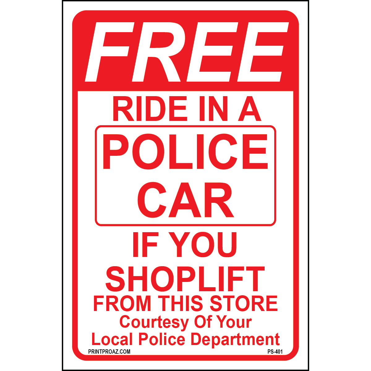 "Free Ride In a Police Car Sign" Red/White Print on Aluminum