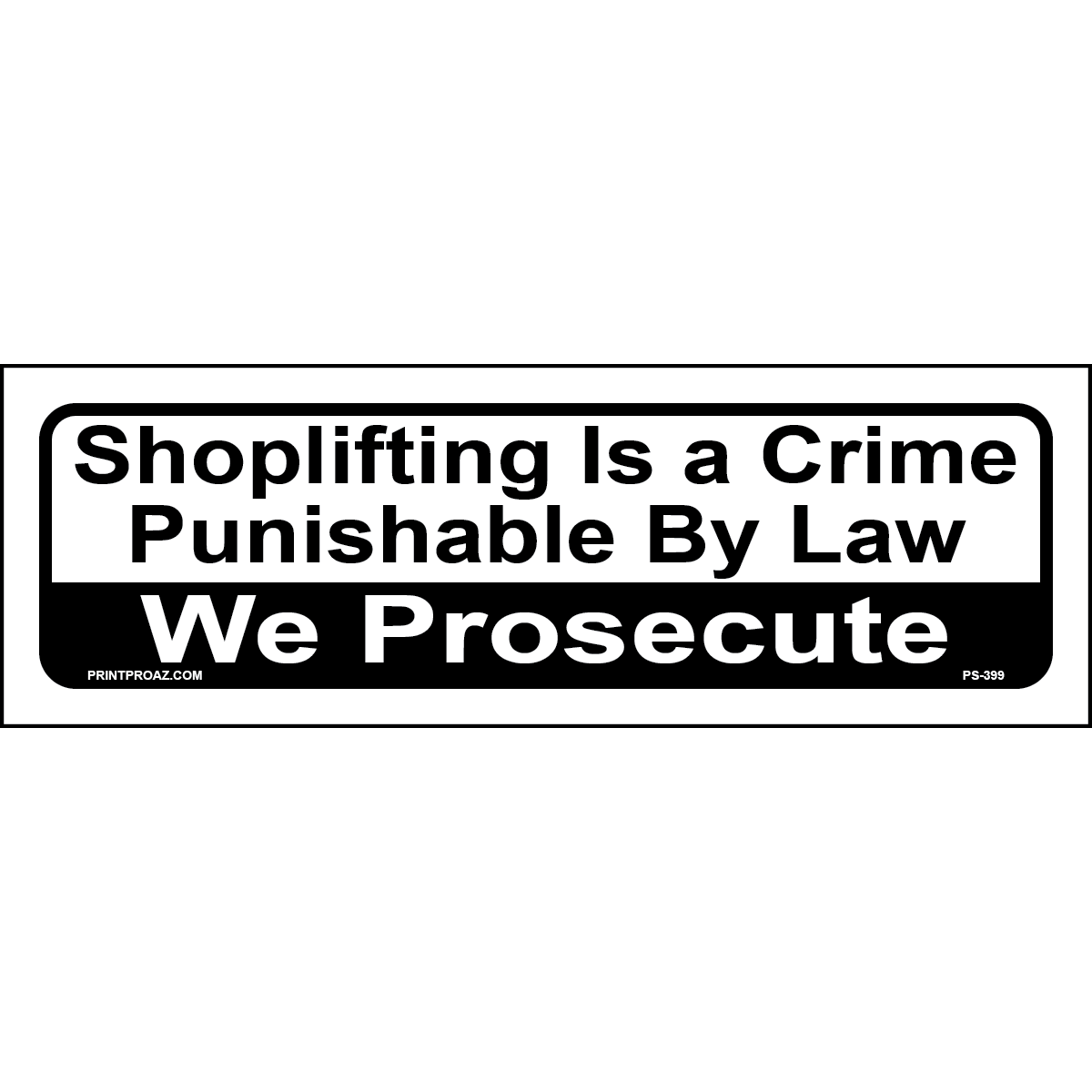 "Shoplifting Is a Crime Sign" Black/White Print on Aluminum