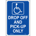 "Accessible Drop-Off and Pick-Up Sign" Blue/White Print on Aluminum
