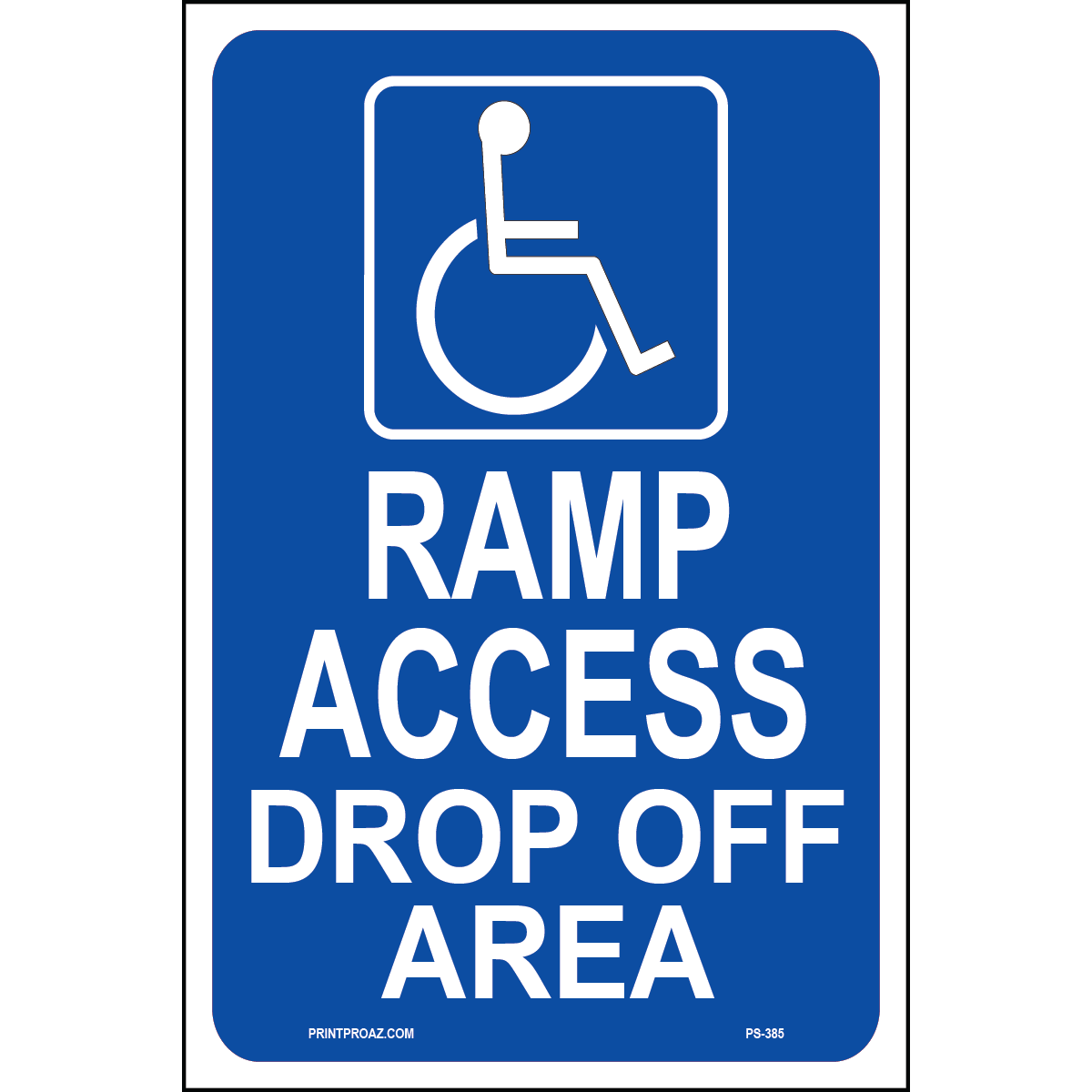 "Accessible Ramp Access Drop-Off Sign" Blue/White Print on Aluminum