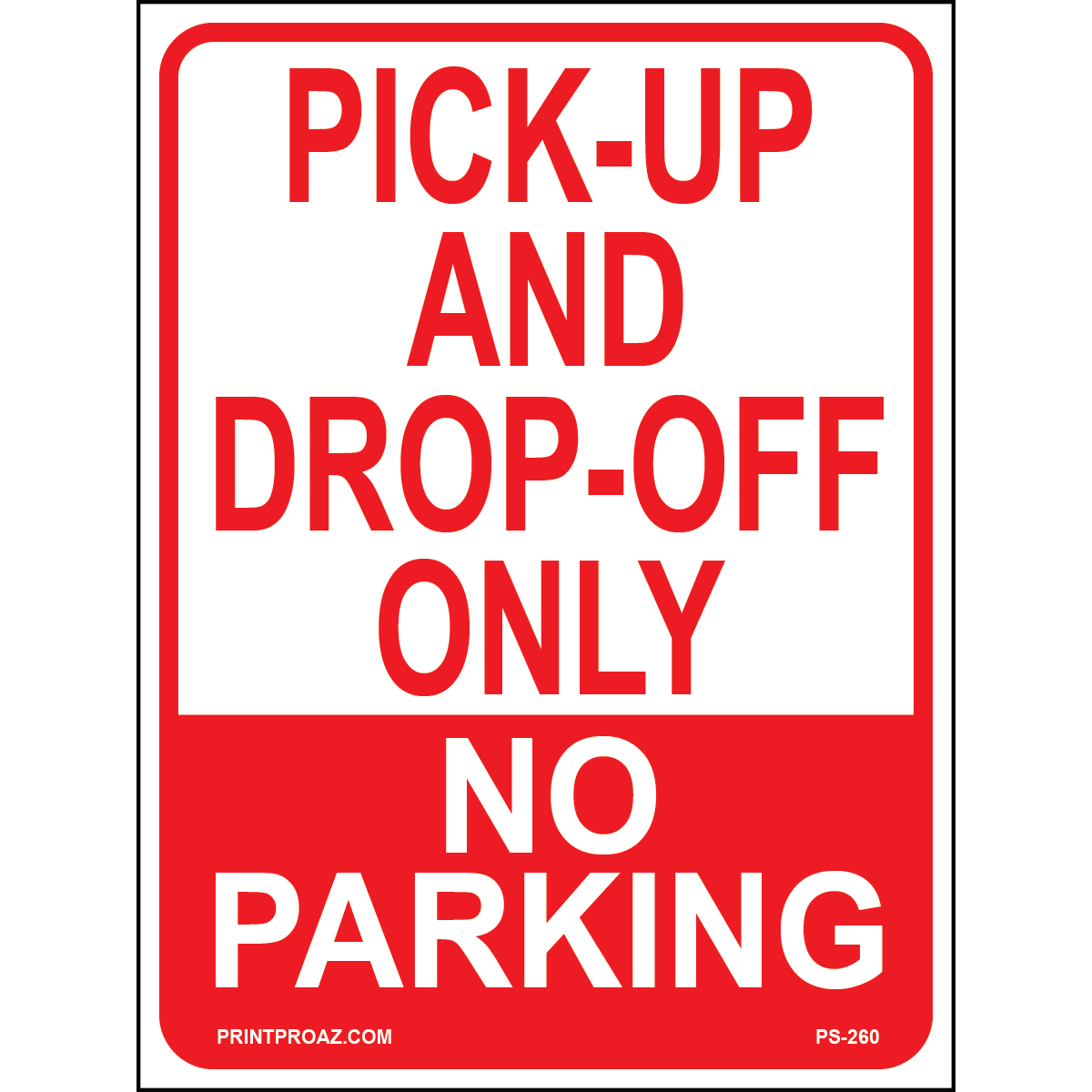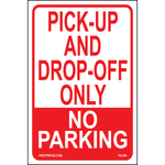 "Pick-Up and Drop Off Only No Parking Signs" Black/Green/White Print on Aluminum