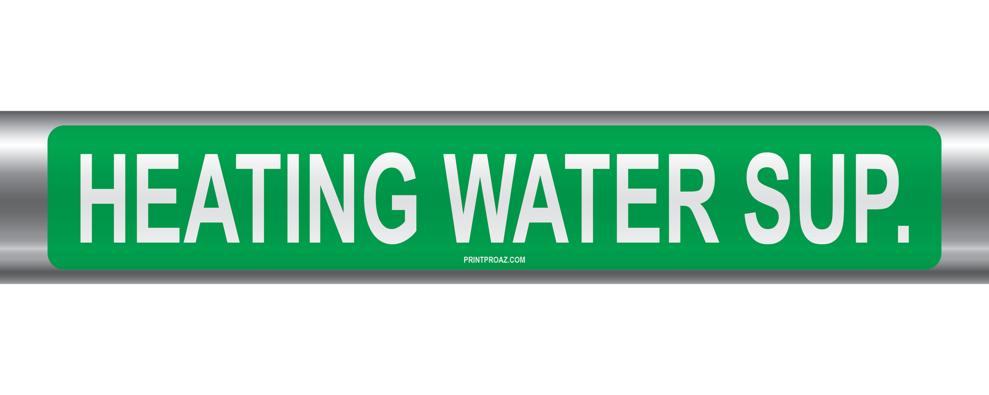 This Heating Water Sup. Self-Adhesive Pipe Marker uses informational messages for safety identification and compliance. A Heating Water Sup. Self-Adhesive Pipe Marker is a useful tool to help protect the health and safety of personnel, but is not a substitute for required protective measures for eliminating or reducing hazards.