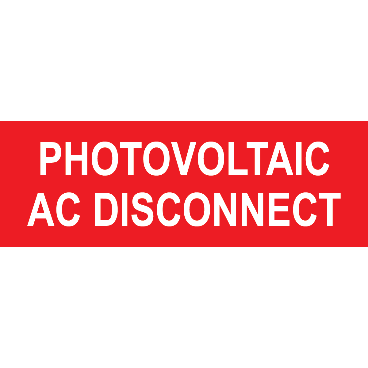 Protect your solar energy systems with this high-visibility and NEC Compliant Photovoltaic AC Disconnect label. Featuring bold red and white print, this durable plastic tag clearly states: