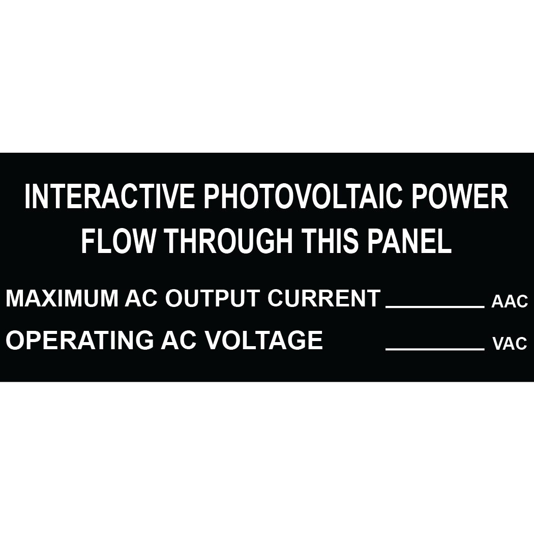 Protect your solar energy systems with this high-visibility and NEC Compliant Interactive Photovoltaic Power Flow Through This Panel label. Featuring black background and white print, this durable plastic tag clearly states:
