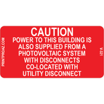 CAUTION: POWER TO THIS BUILDING IS ALSO SUPPLIED FROM A PHOTOVOLTAIC SYSTEM WITH DISCONNECTS CO-LOCATED WITH UTILITY DISCONNECT